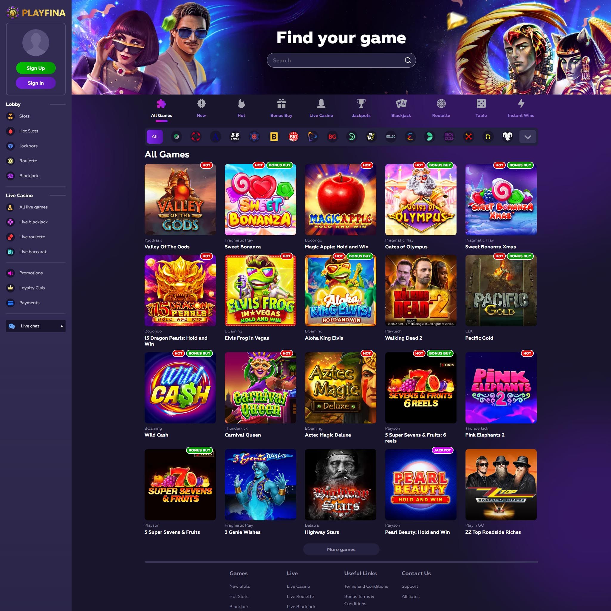Diverse Selection of Games: Playfina Casino features a wide variety of games, including slots, table games, and live dealer games, catering to all types of players.